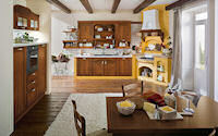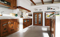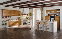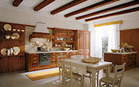 Кухня, которой удается привнести теплую атмосферу деревенской обстановки благодаря дереву и его классическим линиям.
