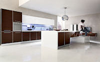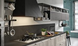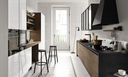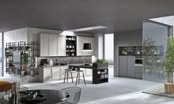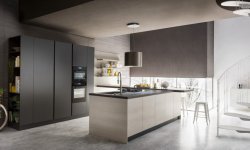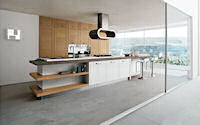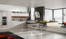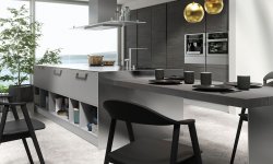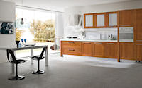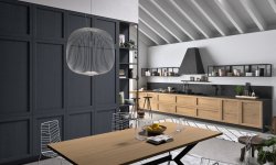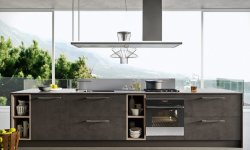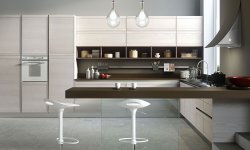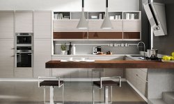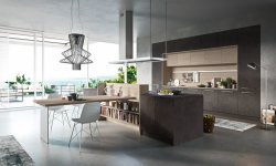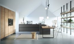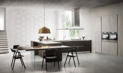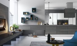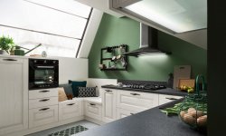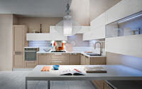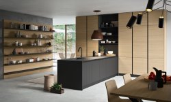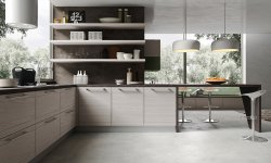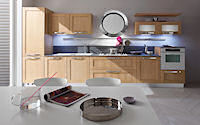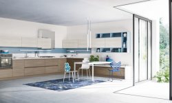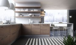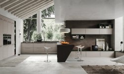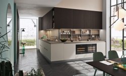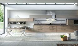 Кухни Idea гармонично сочетают в себе тепло дерева с линейностью ручек, и объемную легкость открытых элементов с лакированными фасадами различных цветов.