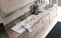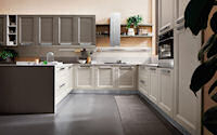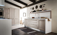 Решения всегда создаются идеями и страстью, вот почему эта коллекция классических кухонь также имеет изогнутые элементы, которые смягчают углы и, в то же время, позволяют разумно удовлетворить все требования к пространству для хранения.