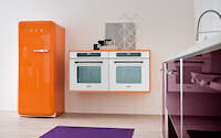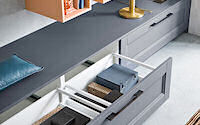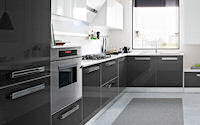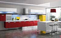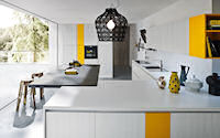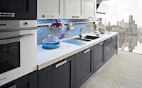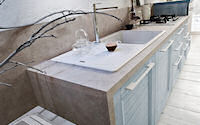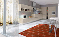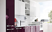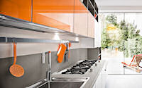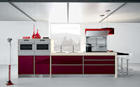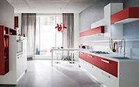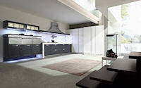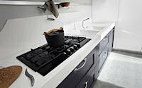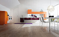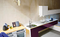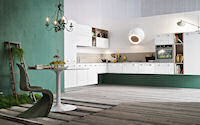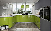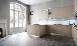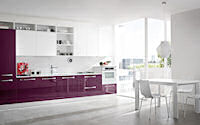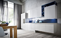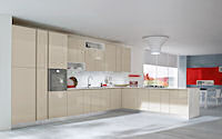 Вся коллекция использует систему ручек Гола, встроенную непосредственно в фасад, что придает кухне заметное ощущение практичности. Базы отделаны 3 разными цветами и покрыты лаком различных цветов.