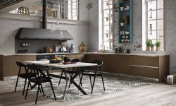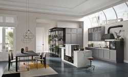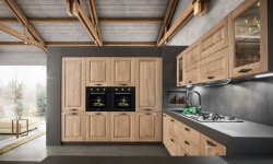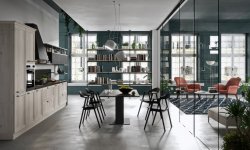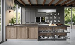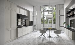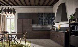 В коллекции кухонь Atena соблюдается преемственность с прошлым: мудрое переосмысление утонченных древних форм через современные отделки из состаренного ясеня.