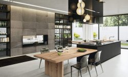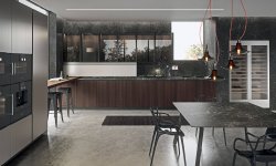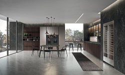Различные эстетические и функциональные решения обединены в единой коллекции, образуя гармоничную связь предназначения самой кухни и материалов.