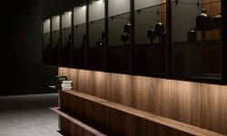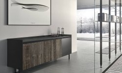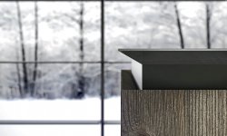 Фасады изготавливаются из уникального легкого, тонкого, но прочного материала, экструдированной алюминиевой рамы, удерживающей панели 4 или 6 мм. толщиной, доступные в различных отделках. От PaperStone®, переработанного экологически чистого материала, до Fenix Ntm®, передового материала с использованием нанотехнологий, которая придает поверхности ощущение компактности и водонепроницаемости, с шелковистой, устойчивой к отпечаткам поверхностью. От Corian® до новых шпонированных отделок из античного и Fiammato дуба, что вместе с термообработанным дубом с эффектом "ручного распила" расширяют диапазон. Наконец, новые закаленные сверхлегкие глянцевые и сатиновые отделки в дополнение к глянцевому и матовому лакированному варианту.