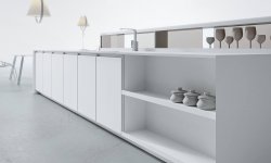 Широкий спектр доступных вариантов отделки и различные типы модульности позволяют создавать проекты кухонь, адаптированные к потребностям пользователя. Один и тот же проект может быть настроен со всеми видам отделки без существенных изменений.