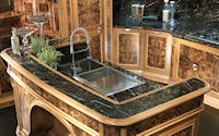 Эстетика и качество всегда главные действующие лица в области дизайна интерьера кухни. Мастера-краснодеревщики, которые всегда работали в BAMAX, материализуют это желание в кропотливой резьбе, создавая скульптурные шедевры, такие как прекрасные ножки стола в вишневой кухне с инкрустацией Ambra.