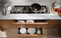 Коллекция Pietra интерпретирует композицию, в которой поддерживаются связь между воспоминания и строгостью планирования. Сильное визуальное воздействие острова, с очаровательным моментом использования изогнутых линий, не только в качестве формального признака, но создающего пространство для работы на кухне с сильными функциональными качествами.