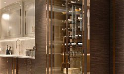 Встроенные элементы из бронзы задают гармонию линий и пропорций, создавая ритмичность и вертикально разделяя кухню на сектора.