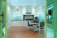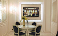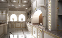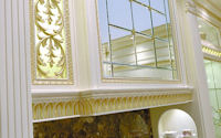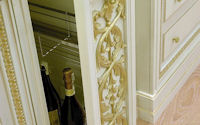 Богатый резной портал является местом для библиотеки, с раздвижными дверями, куда могут быть встроены технологические системы, такие как экран для проекции видео.