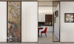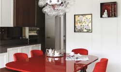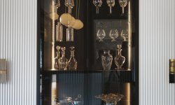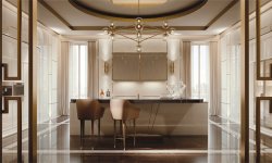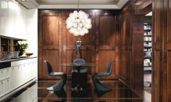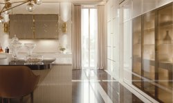 Déco отображает высокое мастерство, выраженное во всех элементах интерьера: кропотливая профессиональная обработка орехового дерева для создания буазери, создание ящиков извивающейся формы, использование стекла с резным узором "ромб" для раздвижной вытяжки, реализация отделений в ореховом дереве с латунными элементами и использование мрамора, создавая геометрические формы из его природного рисунка.