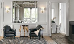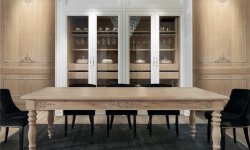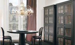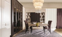 К вашим услугам в гостиной находятся два одинаковых серванта, которые доступны разных размеров. Напротив находится круглый вращающийся стол ‘Seguso’. Все ценности классического дизайна выражены чистыми линиями высокого стиля.