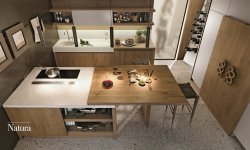 Как было уже сказано, наша история начинается в далёком 1958 году; с тех пор наш отец Франческо создаёт кухни, отличающиеся неоспоримым качеством, мастерски используя в их создании натуральное дерево. Во время создания коллекции Natura мы придерживались его философии, согласно которой дерево является основным материалом со всеми его природными характеристиками: неоднородной структурой и живой сущностью. Дверцы состоят из многослойного дерева, которое можно наблюдать в разрезе, так как этот материал полностью натуральный.