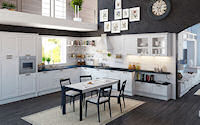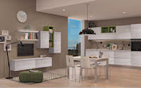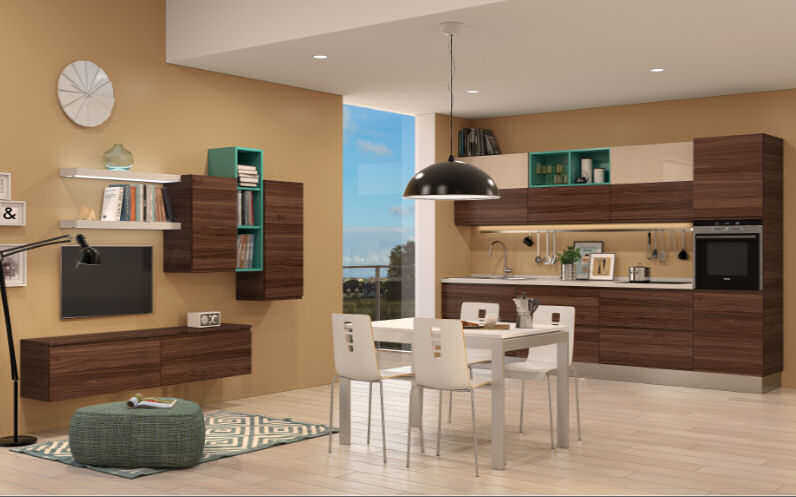Единые для четырех цветовых вариантов типоразмеры фасадов и декоративных элементов позволяют создать широкий модельный ряд мебельных гарнитуров для кухни, гостиной, столовой как в моноцветовом решении, так и в различных сочетаниях.