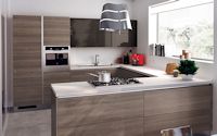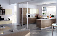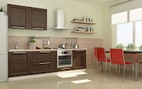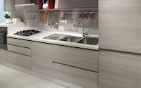 Фасады производятся из термоструктурированной ДСП с модной горизонтальной текстурой, создающей визуальный и тактильный эффекты натуральной древесины. Четыре варианта исполнения модели - Орех, Темный Орех, Дуб Прованс, Ясень Жемчуг - представлены в одной цветовой тональности, что делает возможным комбинацию фасадов разных цветовых решений в одном проекте.