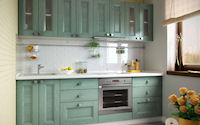 В линейке кухонь современной классики Гиове представлены рамочные фасады, глухие, под стекло и с горизонтальным разделением. Палитра отделочных материалов включает белые, перламутровые, серые, бирюзовые, бордовые и древесные оттенки.
