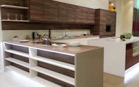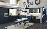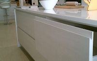 Дополнительные преимущества коллекции: наличие закругленных элементов; возможность изготовления нестандартных размеров под заказ; возможность изготовления фасадов из трех частей с комбинацией вертикальной и горизонтальной текстур (как с интегрированной ручкой, так и без нее).