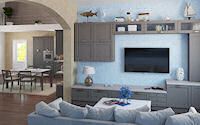 Для модели разработаны декоративные стекла, вытяжка и столовая группа.