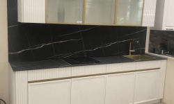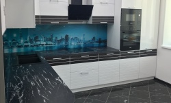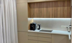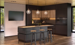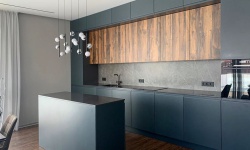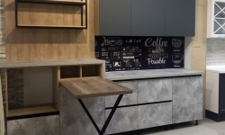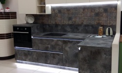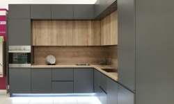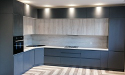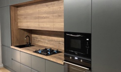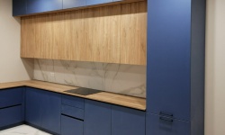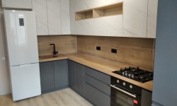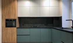 Фасад: МДФ, облицованая пластиком или шпоном. Пластик коллекции FENIX от ARPA (Италия). АБС-кромка Dollken (Германия), а также кромка с 3D-эффектом.