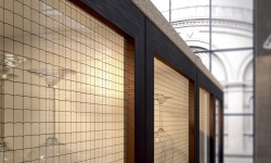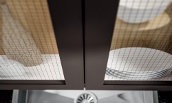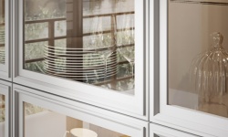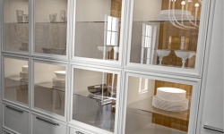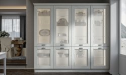 Поставляется с ребристым фасадом из МДФ с ПВХ покрытием в 4 цветах, и с различными стеклянными дверцами.