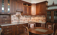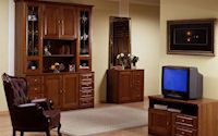 Рамка: Массив Red Alder, филенка: МДФ, облицованная шпоном черешни, Отделка: Тонирование с искусственным старением и глянцевым лакированием.