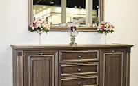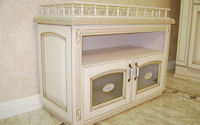 Рамка: массив липы с золоченым декором, филенка: МДФ профилированная, облицованная шпоном черешни, отделка: тонирование, патинирование, лакирование