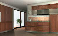 Рамка: Массив Red Alder, филенка: МДФ, облицованная шпоном черешни, Отделка: тонирование с искусственным старением и глянцевым лакированием.