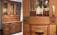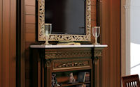 Рамка: массив ольхи, филенка: МДФ, облицованная шпоном черешни, Отделка: Тонирование с искусственным старением и глянцевым лакированием, инкрустация.
