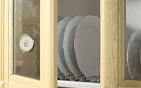 Рамка: Массив ясеня, филенка: МДФ, облицованная шпоном ясеня, Отделка: Декапе-паспарту с зеленой или синей патиной.