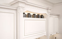 Рамка: Массив березы, филенка: Плита из HDF, Отделка: Laccato, белая с золотой патиной.