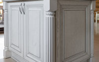 Рамка: Массив ясеня, филенка: МДФ, облицованная шпоном ясеня, Отделка: тонирование декапе с искусственным старением и глянцевым лакированием.