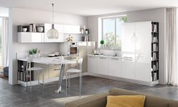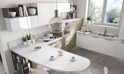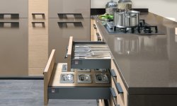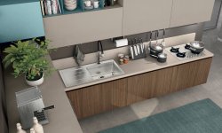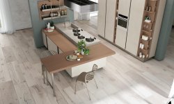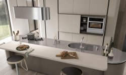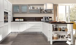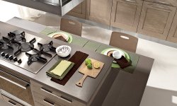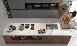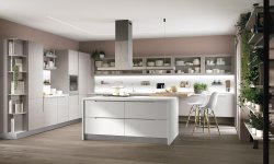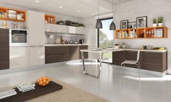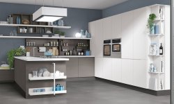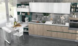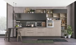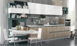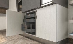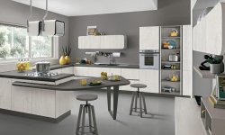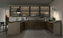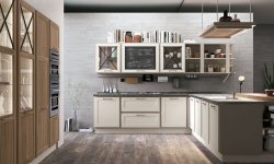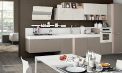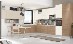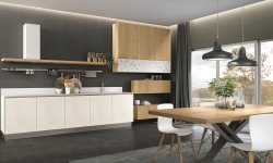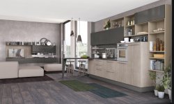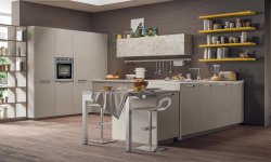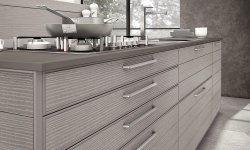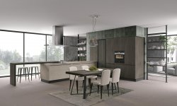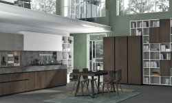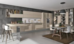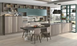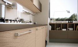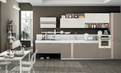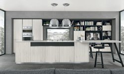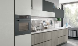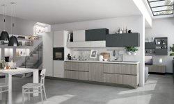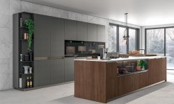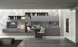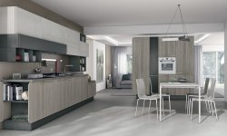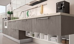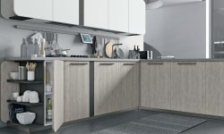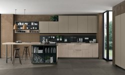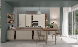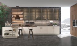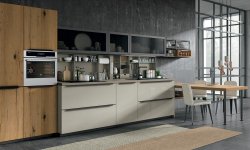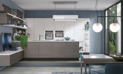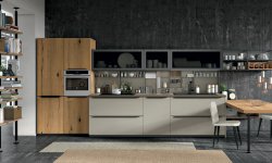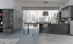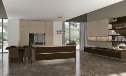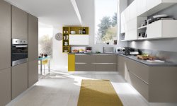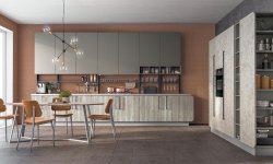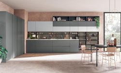Кухня с дверцами в современном дизайне, которая может быть интерпретирована как идеальное сочетание романтических форм с минималистским дизайном. Фактура самая актуальная, в теплых тонах Roveri, Зола и Грецкий орех. Палитра в мягких или ярких тонах, глянцевых и непрозрачных, в сочетании с гладкими или фактурными фасадами, делает Gallery способной выразить всю свою универсальность. Современная интерпретация древних традиций для фасадов как с интегрированной, так и традиционной ручкой характеризует линию, которая способна преобразовываться в декоративный элемент, взаимозаменяемый с различными типами ручек, в зависимости от ваших предпочтений. Gallery – кухня вне времени.