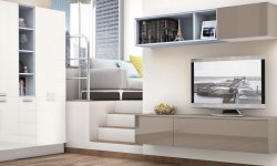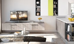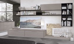 Essenza обработка шпоном с меламиновым покрытием: древесно-стружечные плиты (класс E1) толщиной 22 мм, ламинированные меламиновой бумагой под дерево с матовой поверхностью "открытые поры" и отделкой "tranchè"(прожилки с эффектом распила с небольшим рельефом), отделка "однотонная matt" и "синхропоры" лакированная: кромка выполнена из крашеного ABS и нанесена с использованием термореактивного полиуретанового клея.