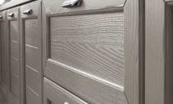 Дверцы из МДФ, покрытого полимером с эффектом дерева, матовая отделка с вертикальными прожилками, толщ.18 мм с внутренней частью из белого ламинированного ДСП, оттенки: белая пихта, пихта серый пыльный, пихта мел, дуб медовый, вяз высушенный.