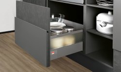 Фасад вар.1: Створка толщиной 22 мм с облицовкой из меламина и кромками из пластика АБС или полипропилена в тон.