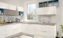 Дверцы из одноцветного МДФ, покрытого полимером, глянцевая отделка, толщ.18 мм с внутренней частью из белого ламинированного ДСП со следующими оттенками: абсолютно белый, слоновая кость, серовато-бежевый, серо-сизый темный, зеленый просо, зеленый лес, голубой альпака, серый шиферный, горчица, красный феррари.