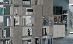 Oltre Lux с отделкой под цементный раствор: Створка толщиной 22 мм состоит из основы, сделанной из древесно-стружечной плиты, облицованной с двух сторон высокоплотными панелями HDF (класс E1), покрытыми цементным раствором, полученным путем смешения различных компонентов, гидравлических вяжущих составов и инертных материалов, на основе кварцевой муки и минеральных песков определенного гранулометрического состава, без солей и загрязняющих элементов. Во избежание того, что колебания температуры или высокие динамические нагрузки спровоцируют появление трещин или коробления, добавляется определенный процент стабилизирующих эластомерных полимерных материалов. Опытные мастера вручную наносят шпаклевку на панели, после ее просыхания на поверхность наносится несколько слоев прозрачного акрила, функцией которого является защита панели от проникновения влаги и грязи. Небольшие дырочки, неодинаковые отпечатки шпателя и неидеальные углы должны считаться не дефектами, а особенностями створки, которые подчеркивают ценность ручной работы.