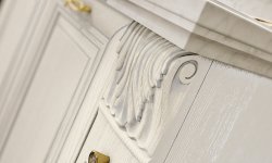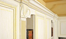 Рамка и филенка из МДФ (класс E1), ламинированные, с грунтовкой белого цвета на основе полиэстерных смол и покрытые нежелтеющей полиуретановой катализированной краской с изоцианатом (лакированные отделки не содержат хром, свинец и кадмий), с патиной для придания эффекта старения, или позолоченной.