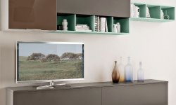 Georgia лакированная с глянцевой или матовой отделкой: плиты МДФ толщиной 24 мм (класс E1) ламинированные, лакированные с грунтовкой белого цвета на основе полиэфирных смол, глянцевые полированные, отделка с использованием нежелтеющей полиуретановой катализированной краски с изоцианатом (лакированные отделки не содержат хром, свинец и кадмий); дверцы и фасады могут быть окрашены в различные цвета, даже на заказ.