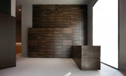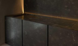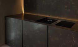 В отличие от повседневного окружения, где преобладают использование и функции, Terra — это то, чем она является, независимо от того, кто мы, что мы делаем и какие функции мы используем. Думая об этой кухне, я представлял себе объект, который, как бы он ни был полезен и функционален, проявляет себя с той же силой природы: твердой, вечной, абстрактной. Я выразил огромную ценность земли в форме строгой геометрии и природных материалов - порфира и кедра. Приготовление пищи на порфировом столе, возрастом двадцать восемь миллионов лет, заставляет меня чувствовать себя одновременно благоговейным и счастливым.