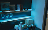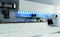 Аксессуары: подвесная рейка с подсветкой, подвесные шкафы с подсветкой, открытые полки с подсветкой с алюминиевой кромкой, подвесная рейка с подсветкой led.